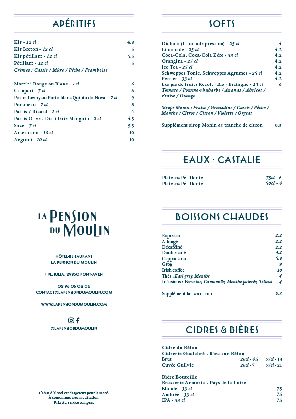 La Pension Du Moulin - Hôtel Restaurant 3 Étoiles Menu